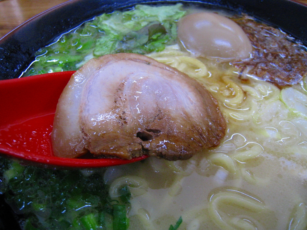 油が多めで濃厚なスープを3種類のネギやサニーレタスが上手く中和してくれる1杯です。