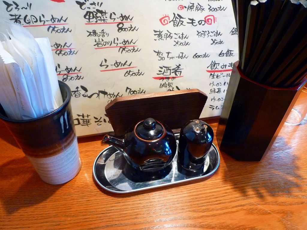 卓上には醤油と胡椒。ティッシュじゃなくて