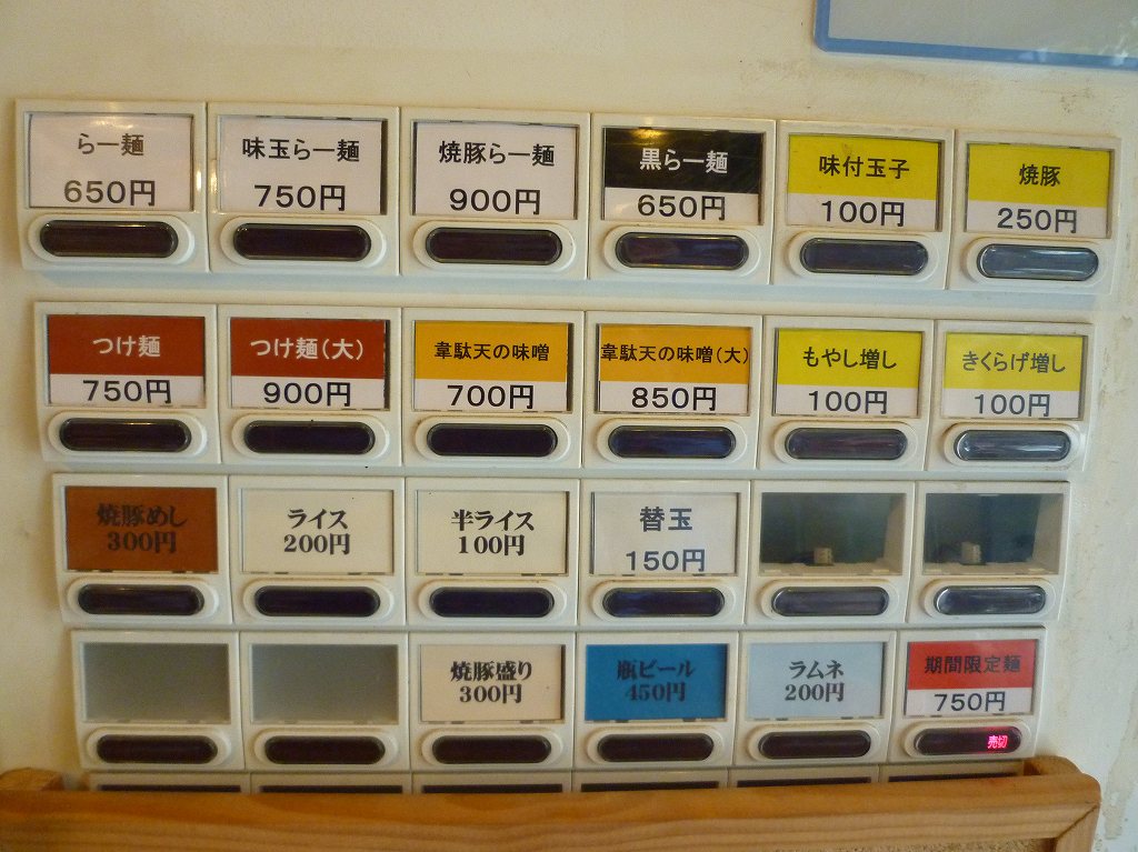 ハイ、現在の券売機はこんなカンジ。2段目に新メニューが入ってますね。