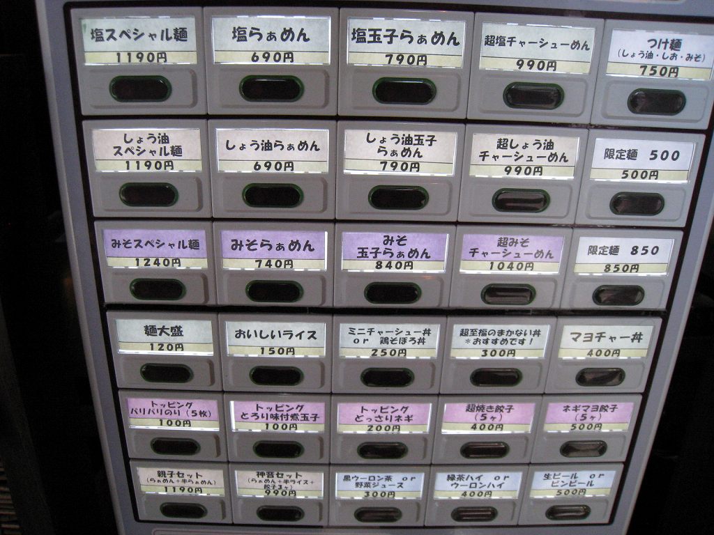 土・日・月限定で淡麗系スープも登場でそれぞれに塩・醤油・味噌。券売機の配置を見ると