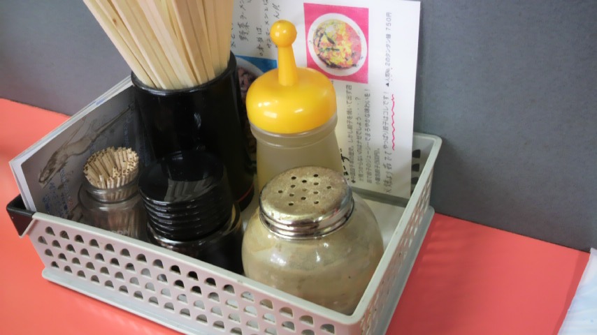 詳しいことはこちらで見てもらうとしてもサンマーメンがいかに柔軟なメニューであるかわかります。卓上はこんなカンジ。説明不要ですね。