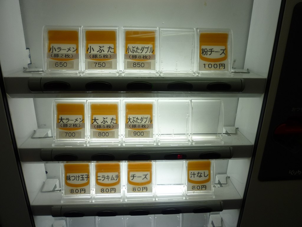 んで、その券売機がこちら。最初に聞かれるのは『小』か『大』かと『汁無し』かだけ。