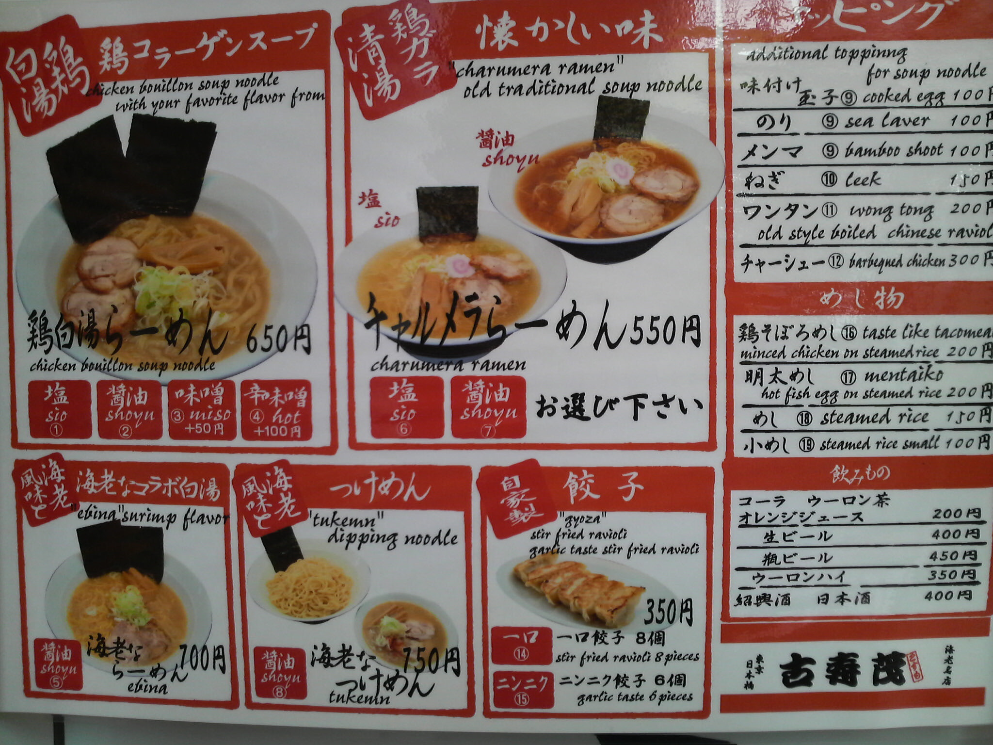 券売機の方は若干の変更が見られたんで撮りなおし。坦々麺が増えてますね。