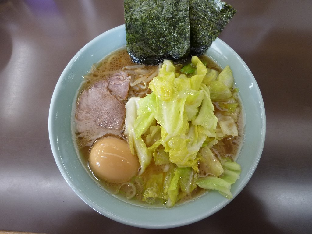 デフォだと彩りに欠けるのは知ってたんでいつもの味玉にキャベツをトッピングしてみました。