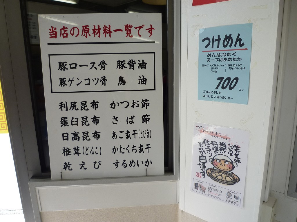 券売機の横には原材料の一覧が。