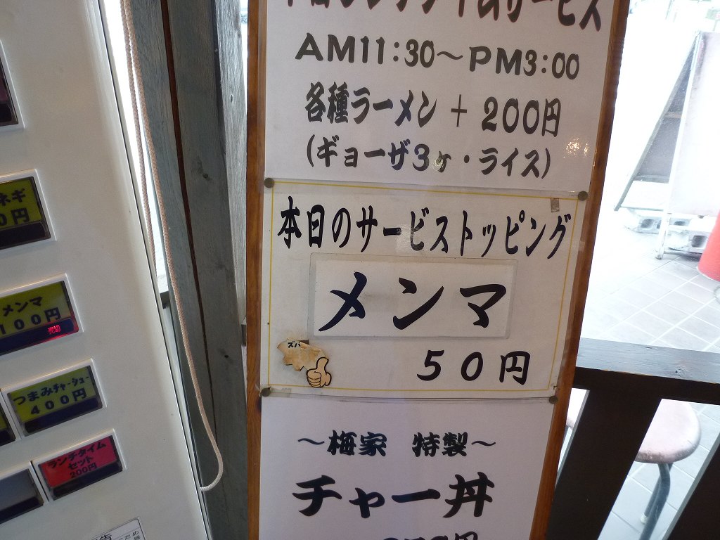 サービスで50円のメンマは小皿にてんこ盛り。ほとんど塩気を感じない薄味仕様ですが