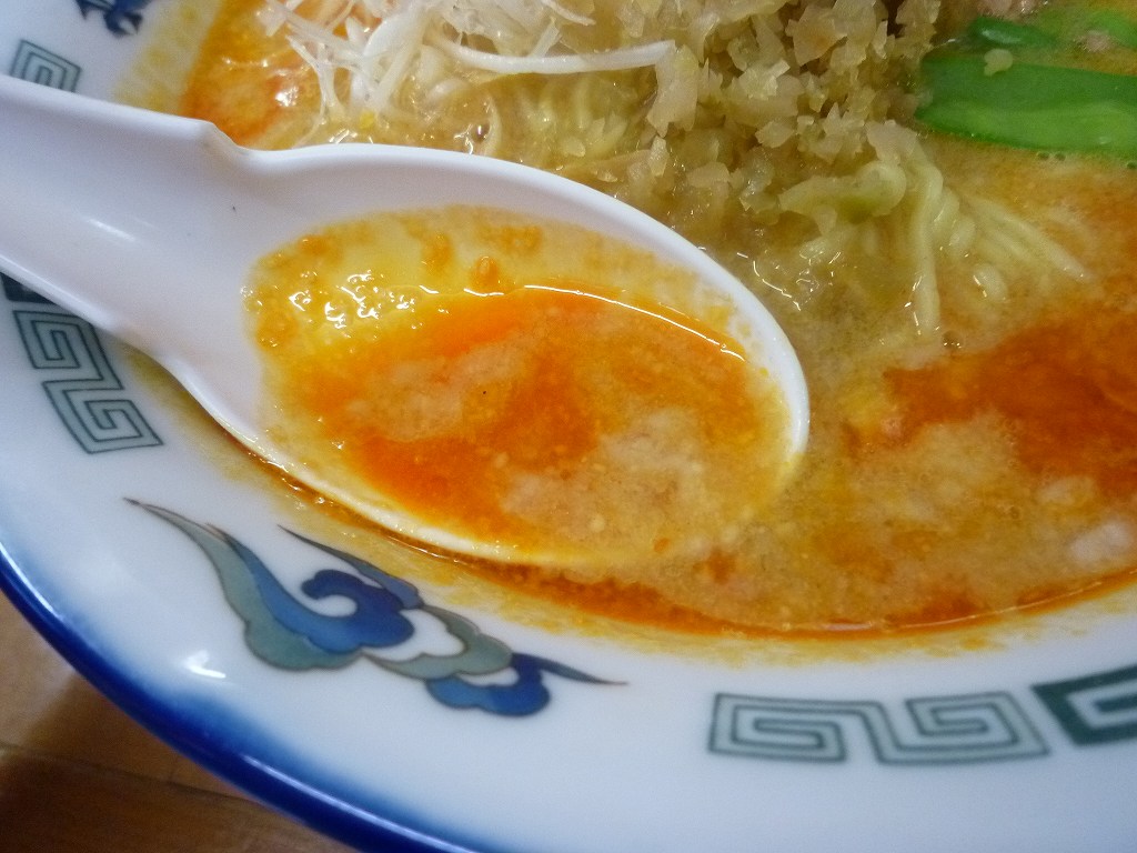 あっさりな清湯にゴマのペーストが浮かび、自家製のラー油がピリッと効いてきます。