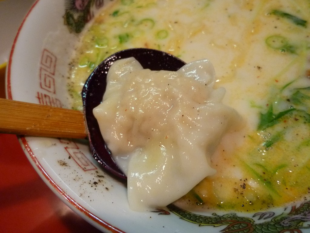 これでもかって生姜の効いた鶏肉を水餃子かってくらい厚い皮に包んだワンタンなわけですが