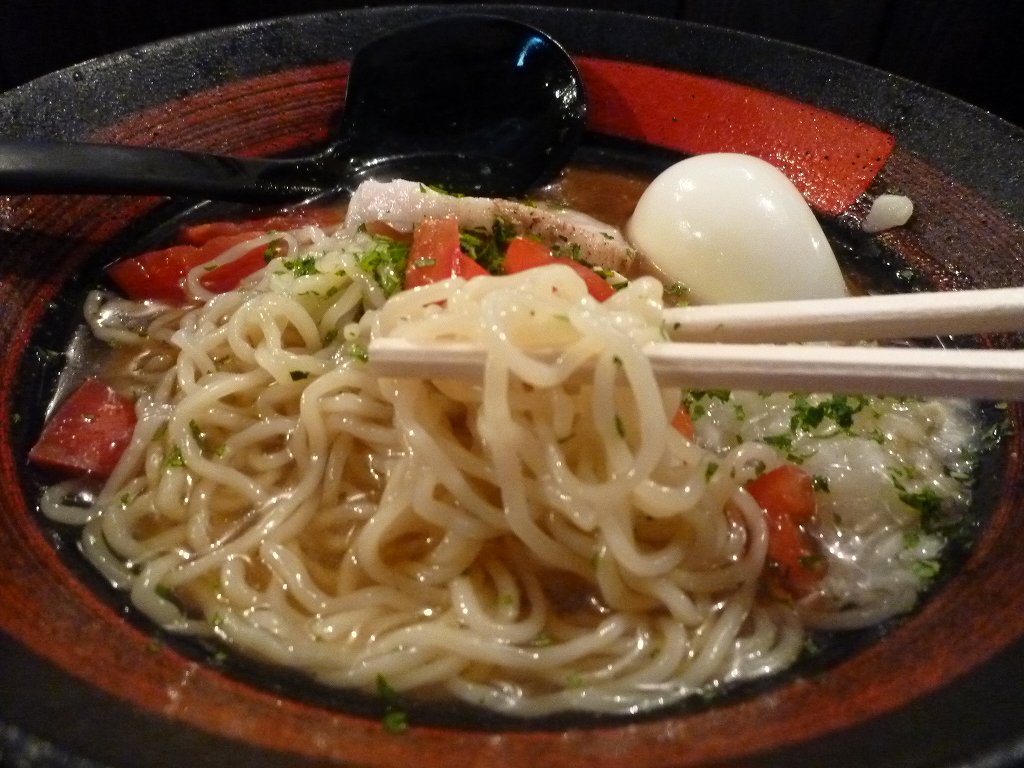 デフォで装備の味玉は冷やし専用の塩味玉。控えめな塩加減でしたがこの1杯には正解かも。