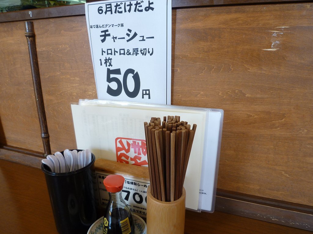 卓上には醤油とカウンター台の上に胡椒。月替わりのサービスなんてやってるんですね。