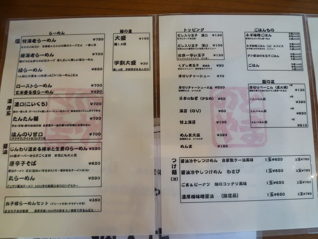 麺のメニューは塩を筆頭に濃厚系と醤油と。つけ麺には面白な種類があります。