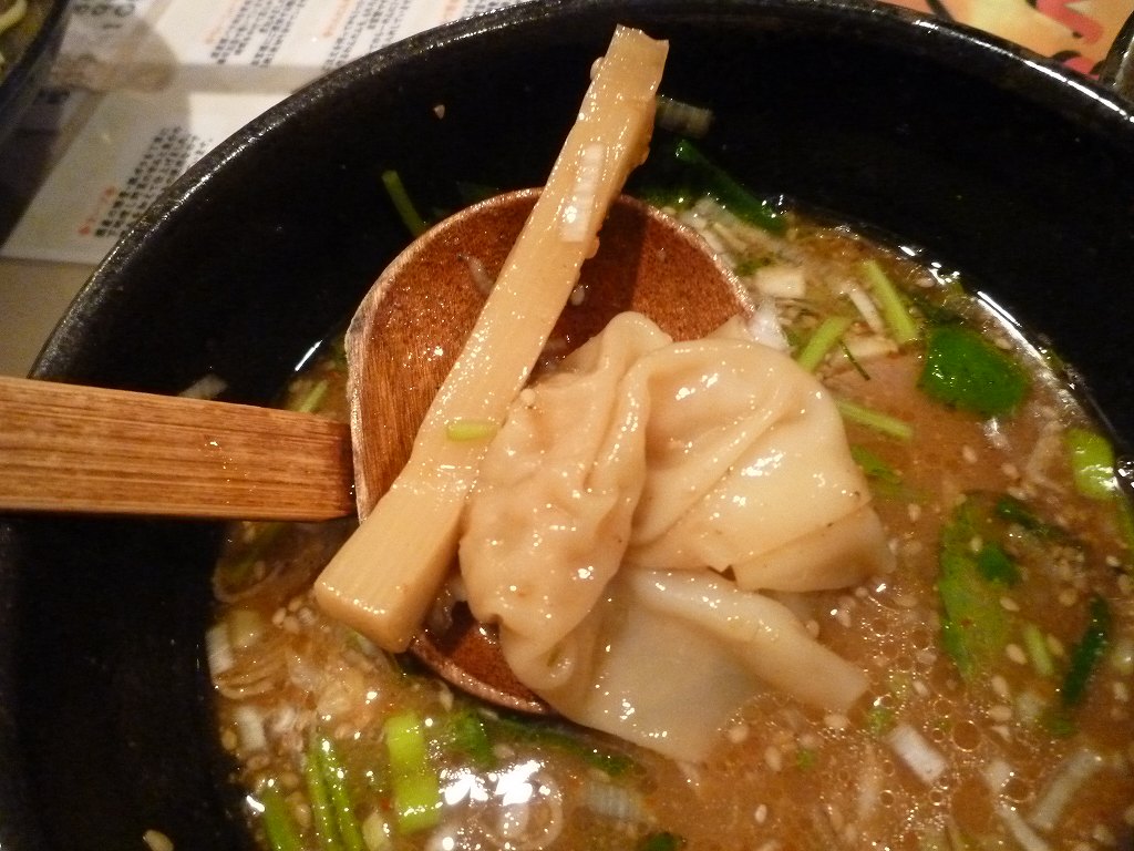 つけ汁の中には太メンマとワンタンが潜んでます。
