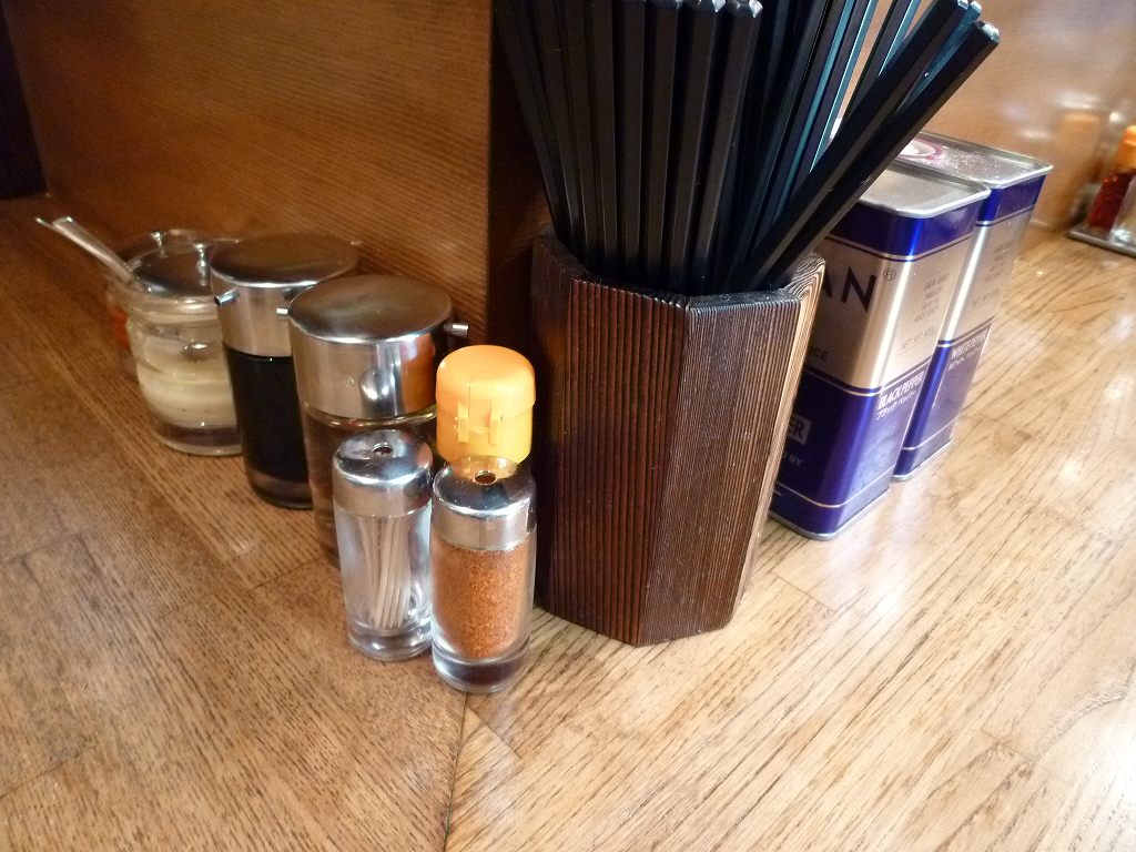 卓上は以前と変わらず。大勝軒デフォですか。つけ麺(並)+半熟味玉¥100