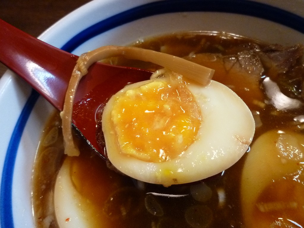 前回はラーメン(少なめ)に半熟味玉で食べてます。