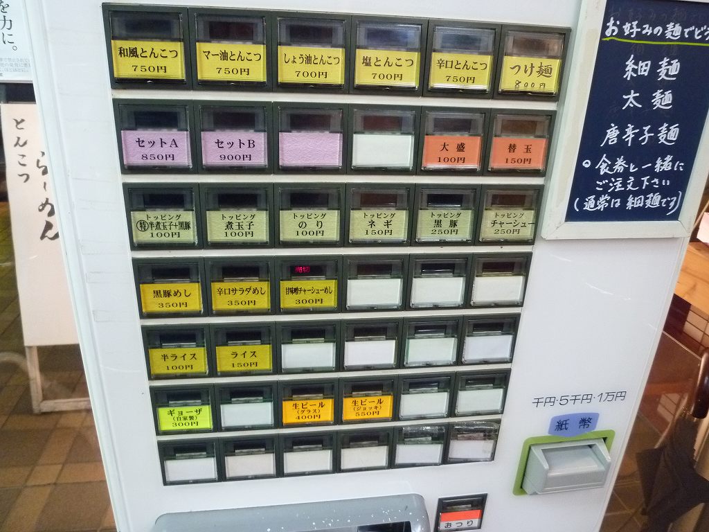 ハイ、使いまわしその1。券売機の写真です。麺は3種類から選べ限定10食でつけ麺も。