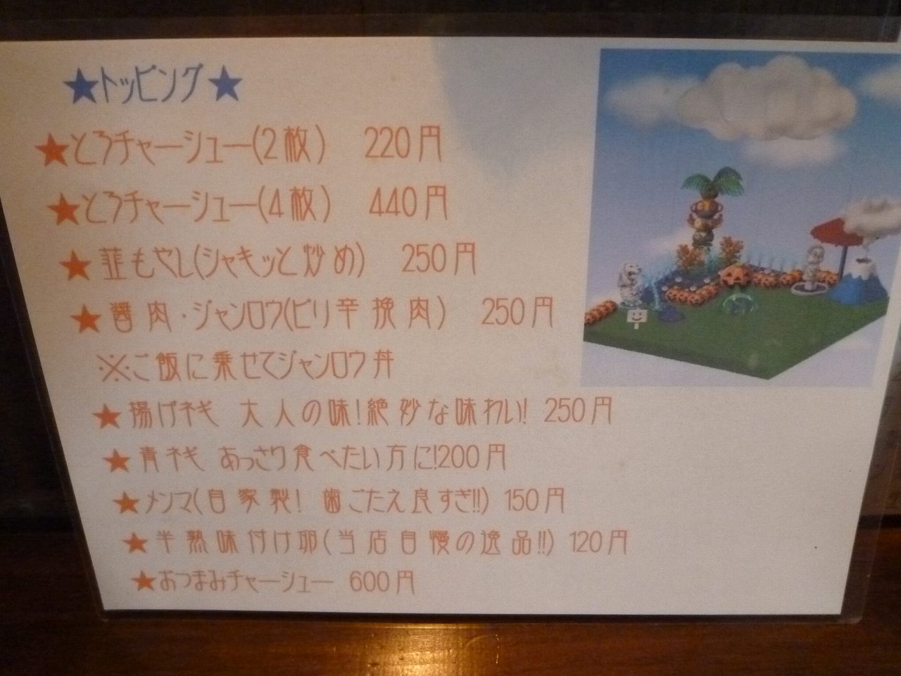 トッピングメニューはこちらで。