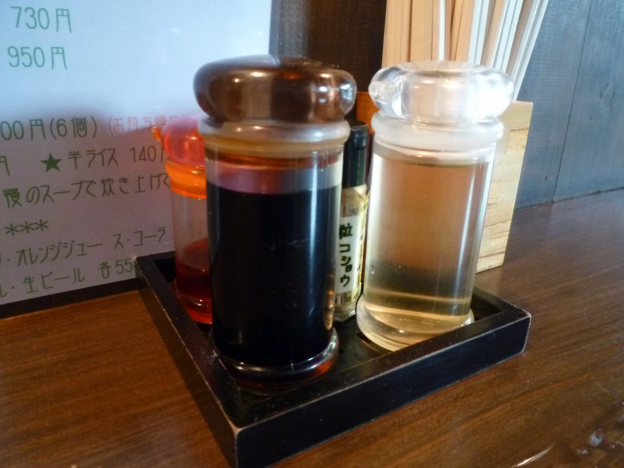 卓上には餃子用の他に粒コショウ。普通の胡椒も置いてありましたけどね。