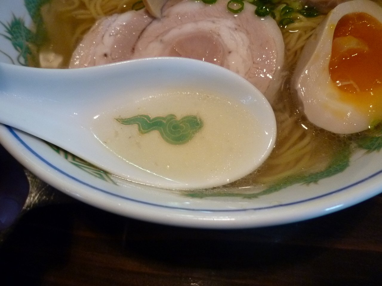 レンゲの模様がクッキリ見えるほど澄んだスープですが旨みはバッチリ。