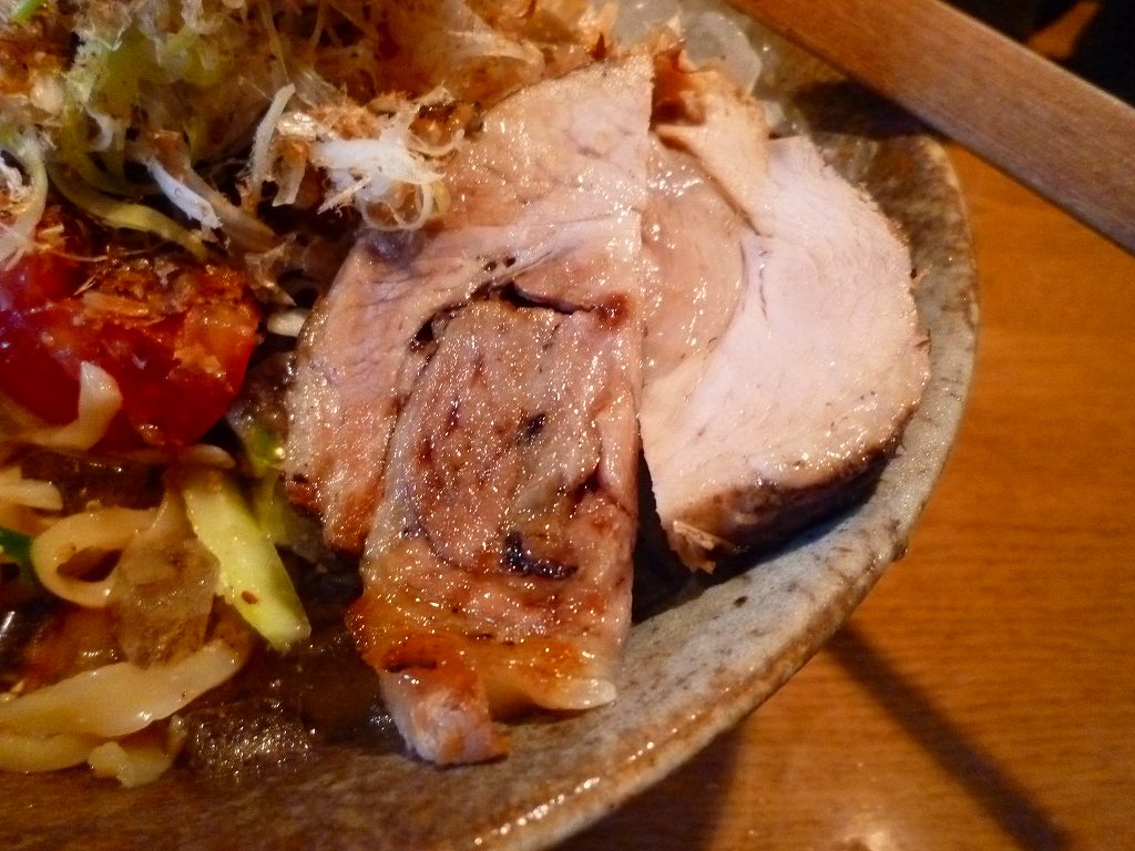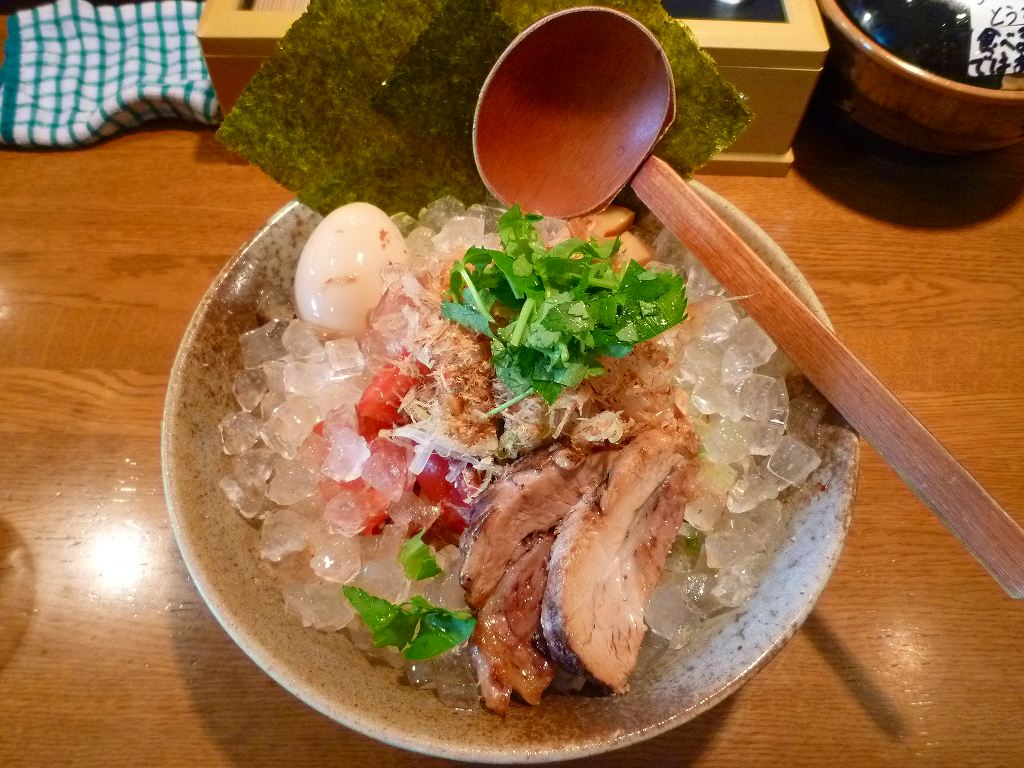 チャーシューは巻きバラですがキッチリ炙り。冷え冷えな1杯の中でもほんのり温かく