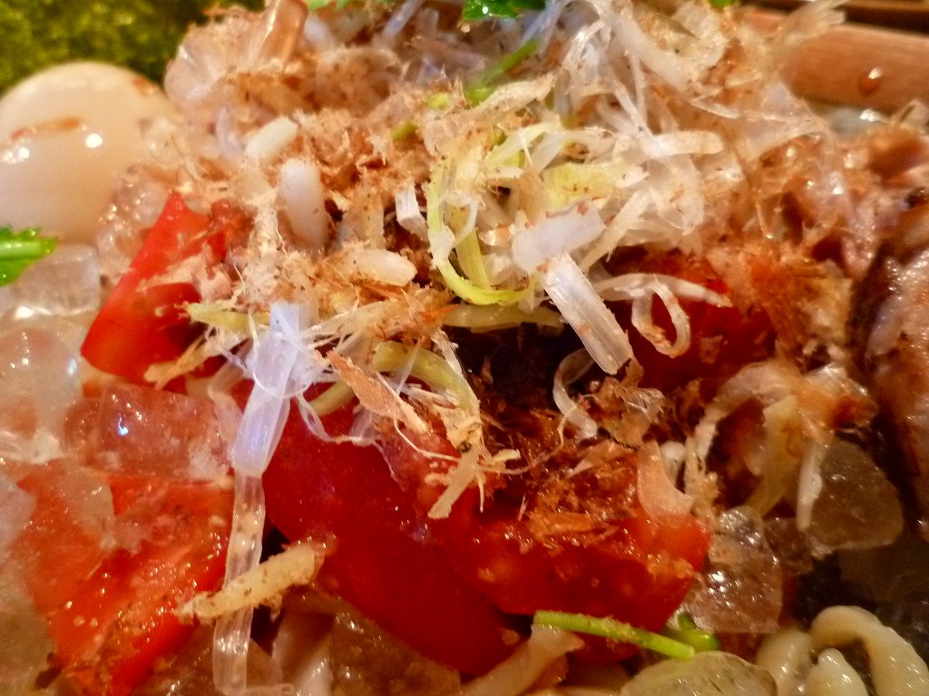 甘酸っぱいタレにトマトと鰹節はヤバ旨w
