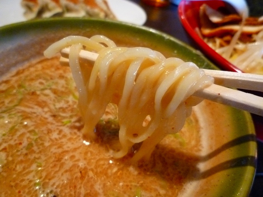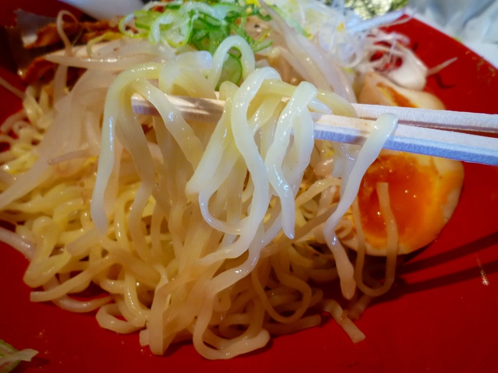 麺は味噌ラーメンのと同じですね。長めに茹でてから〆てるようです。