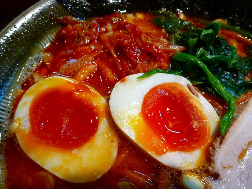 味玉はデフォ半玉なんで追加で計1個分。しょっぱめな味加減でご飯が欲しくなります。