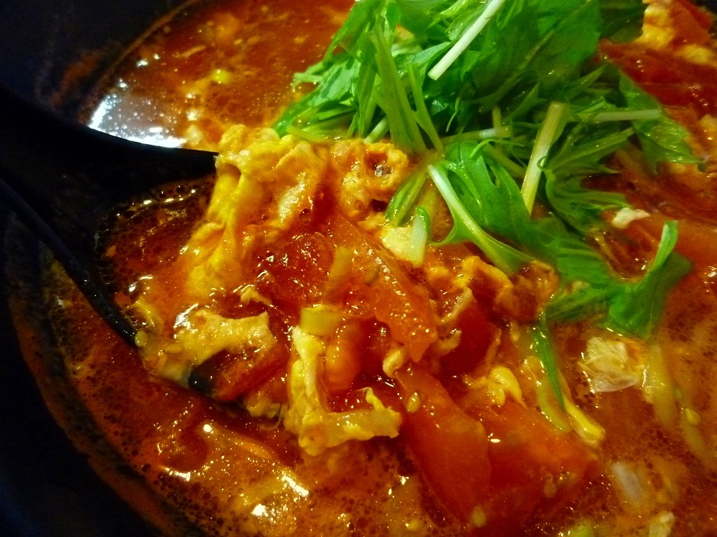 卓上写真は失敗したんで前回の使いまわし。魚粉は健在でしたが辛醤が消えてたような気がします。あんまよく見てなかったんで違ってたらごめんなさい。トマトラーメン¥800