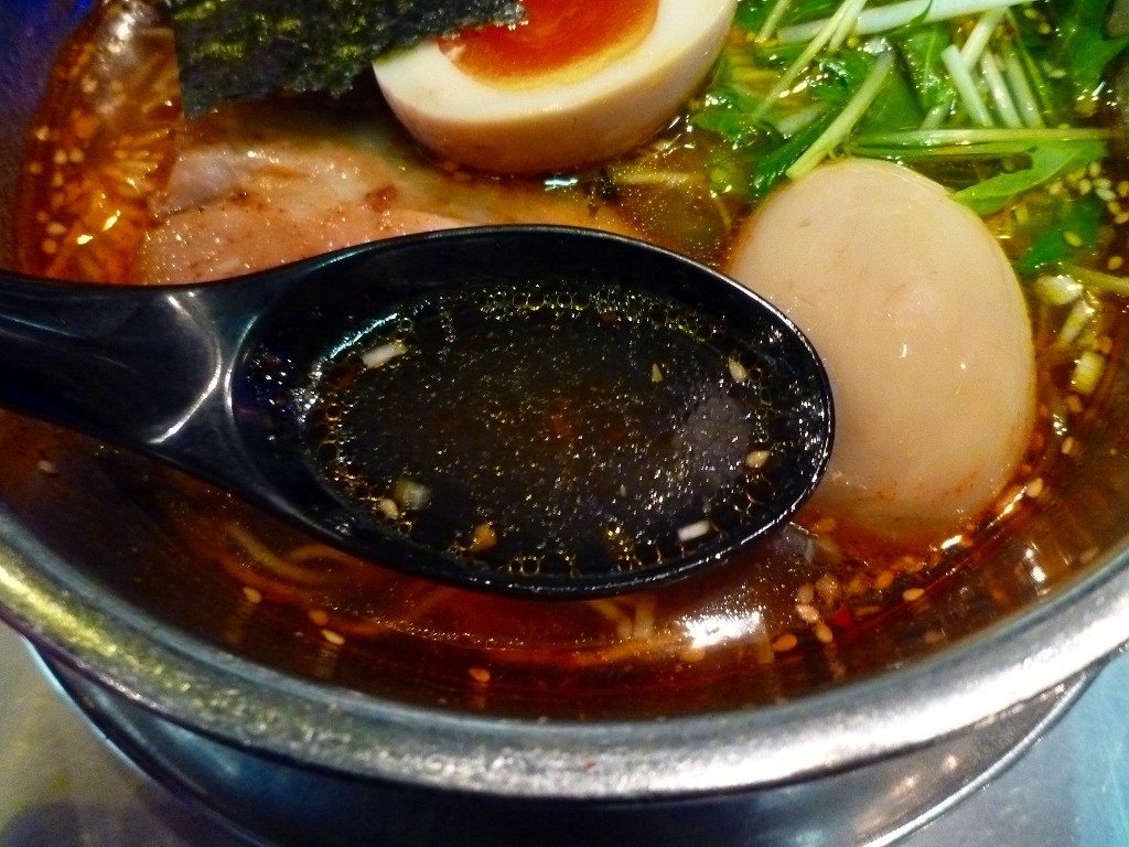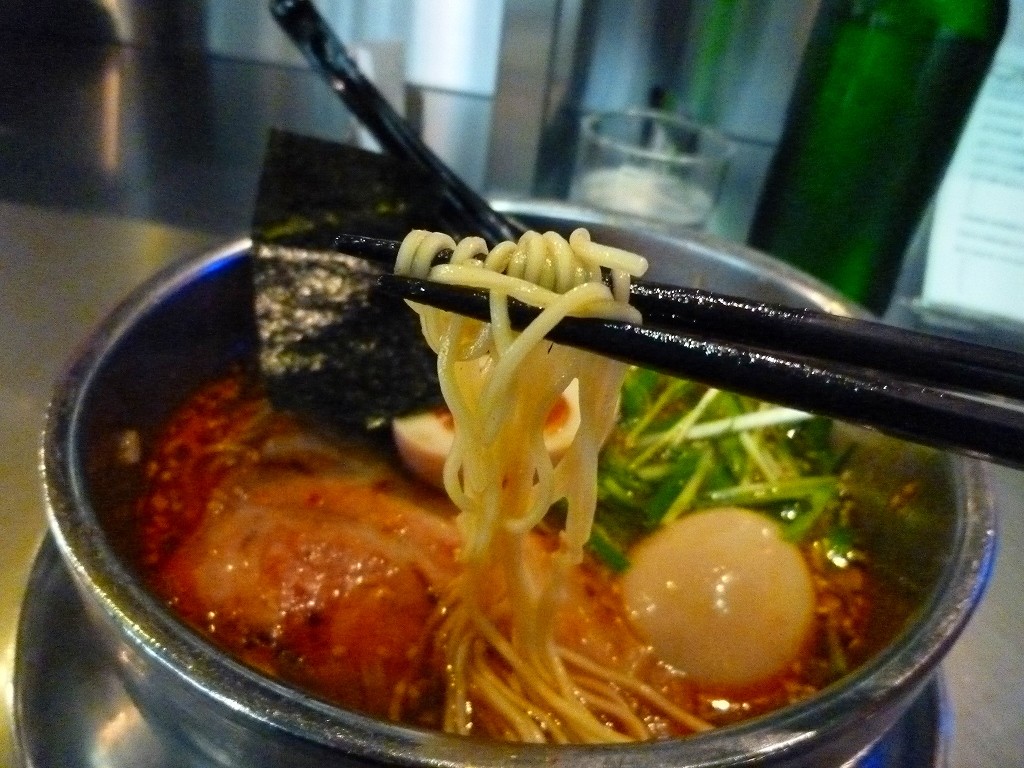 『紅』だけではなんのことぞと思う人もいるかもですがスープに辛みが加えられています。淡麗指定なんであくまであっさり、クリアなダシを堪能することが出来ますね。辛さのほうはピリ辛程度。でも、バランスを崩さないためにはこれくらいが限度なのかな。