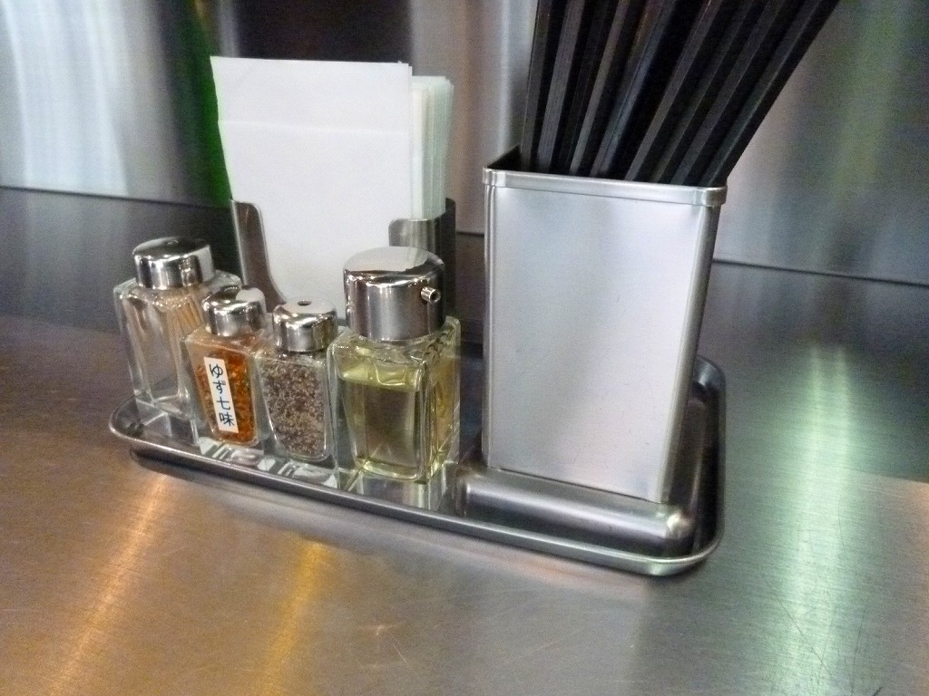 卓上調味料は胡椒にお酢にゆず七味。サイドにご飯ものしかないんでお酢も麺用ってことになりますか。