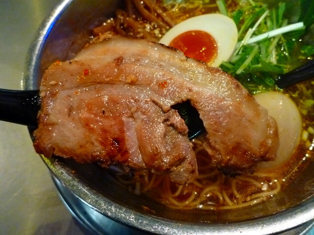 チャーシューは炙りの香ばしさが前面に出る逸品。適度な厚みがあり柔らかさと噛み応えが同居してて味付けも絶妙ですね。
