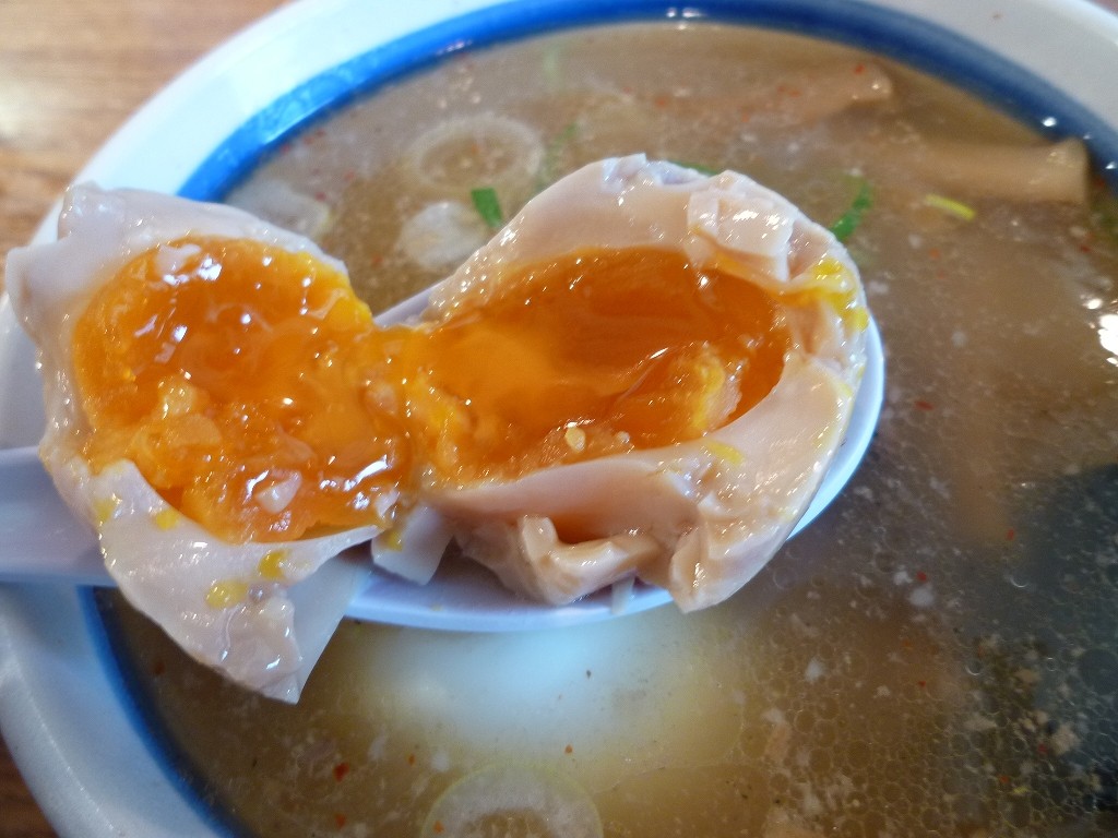 今回の味玉はちょっと失敗しちゃってますね(^-^;)でもでも味のほうはしっかり醤油でダシバッチリ。半熟加減はむしろこっちのほうがナイスなように感じました。怪我の功名とはこのことかな?