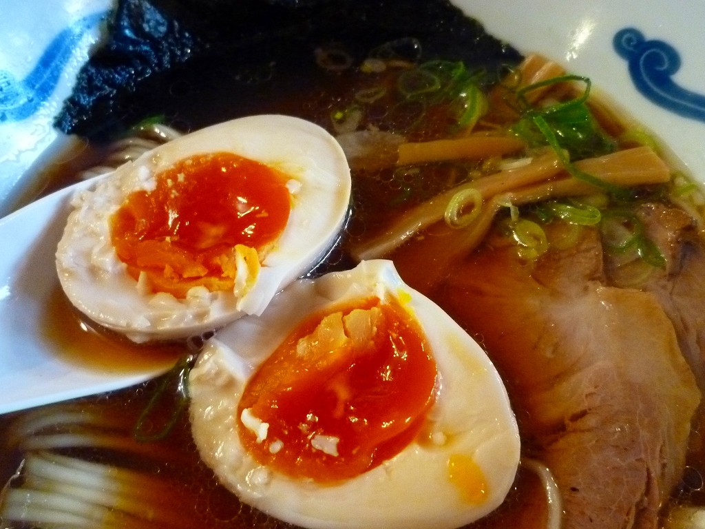 味玉はうづまきと同じくドコモショップ厚木店マイショップ登録でゲットできるクーポン使用です。つまり、麺や食堂とうづまき両店で味玉無料権を得たというスンポーですな。なんかちょっと悪いような気がします(^-^;)
