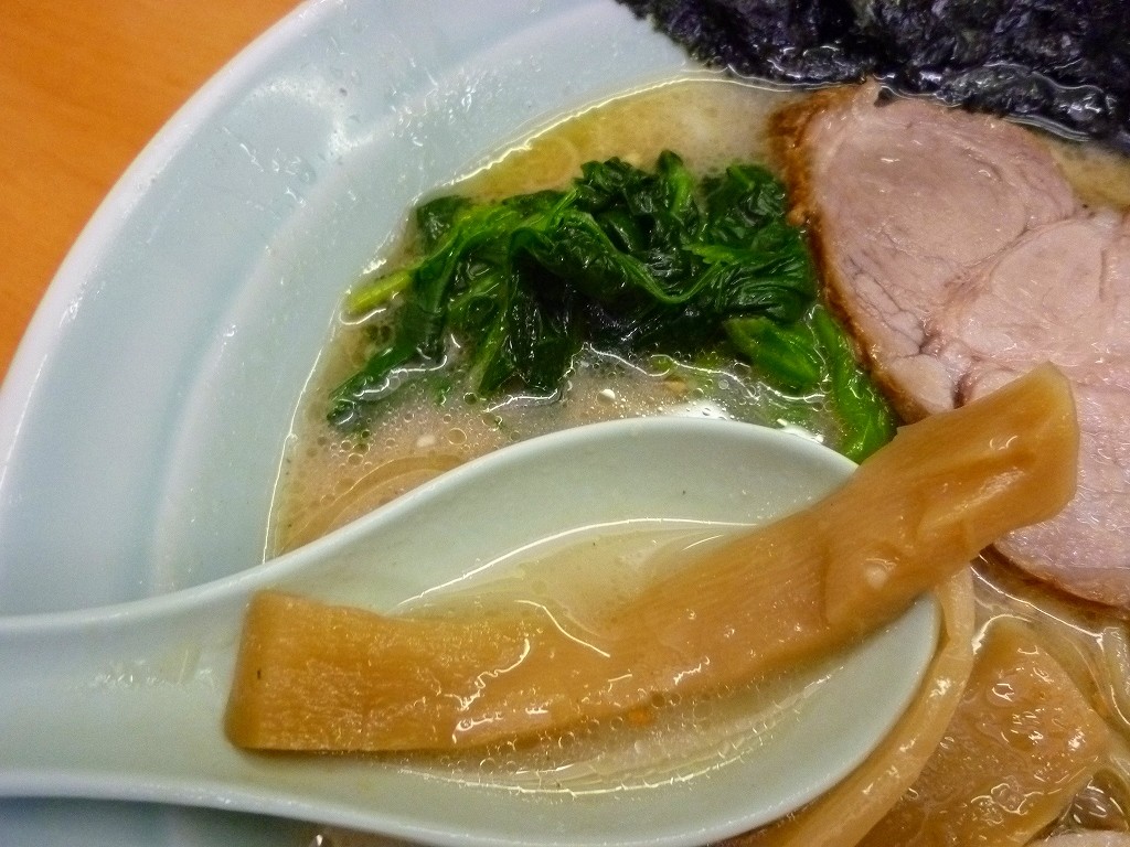 チャーシューは家系としてはかなり大判といっていいかと。しっかりめの味付けにほど良い噛み応えがあります。
