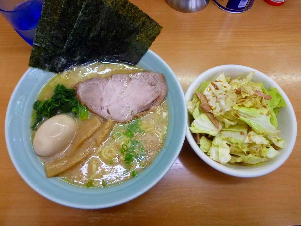 塩とんこつ・油少なめ¥700+キャベチャー¥100+味付玉子¥50