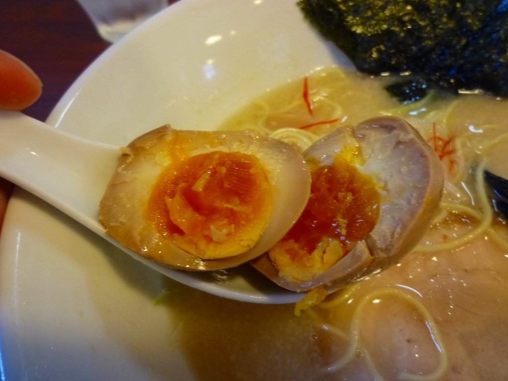 味玉はしっかり漬け込み甘めな加減。ちょっと固めな半熟ですが美味しかったです。