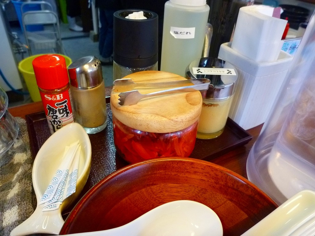 替玉用なのか卓上には塩ダレも常備されてます。味玉らーめん¥700