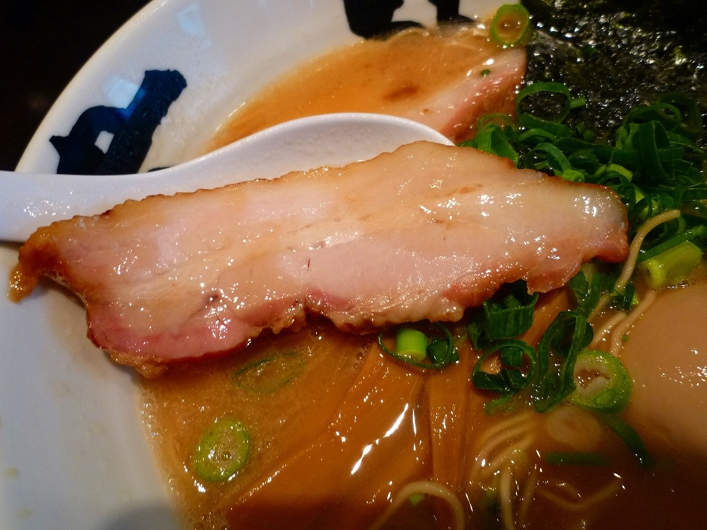 チャーシューは燻製みたいな香ばしさに噛みしめると味が出てくる逸品。バラですが脂身は少なく肉の旨みを堪能できます。