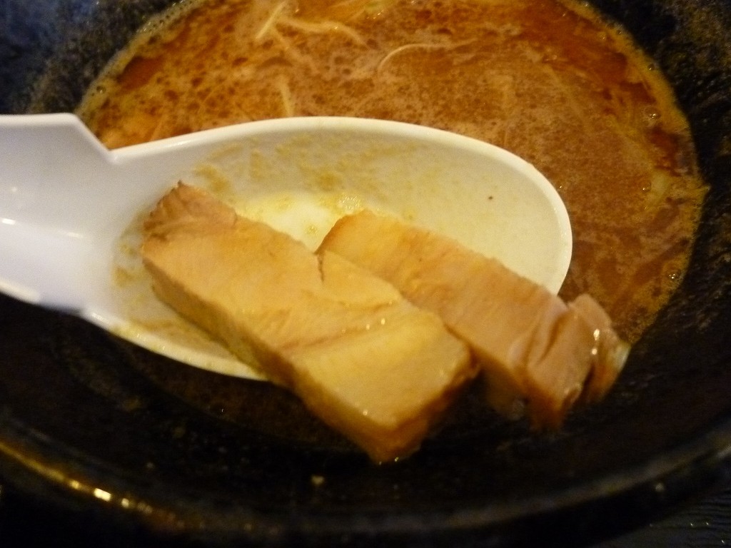 麺は自家製太ストレート。限定用なのか麺も変更したのか記憶にあるこちらの麺からはずいぶんと穏やかになったような気がします。とはいえ結局はモチモチ食感で大変に美味しい麺だということに落ち着くんですが。