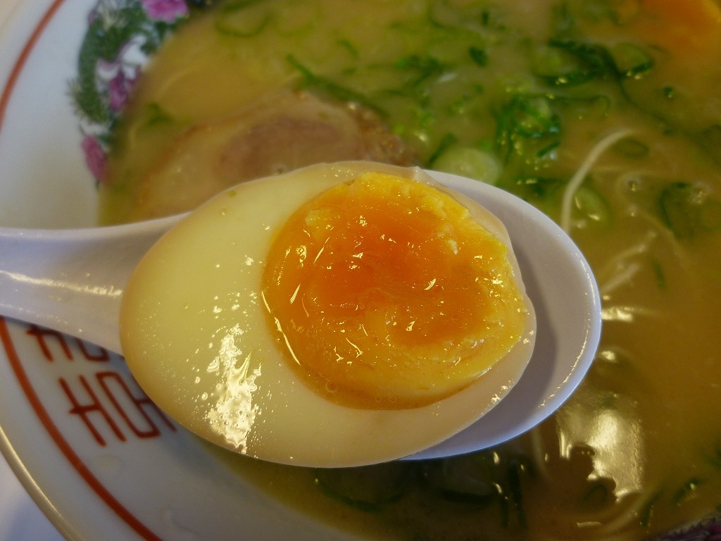 味玉は固めな半熟加減。味の染み込み具合も今一つ。