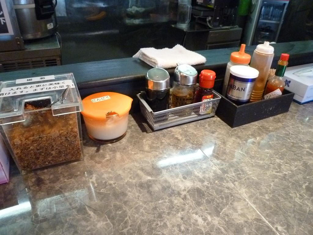卓上では揚げネギとトマトメニュー用のタバスコが特徴的ですか。