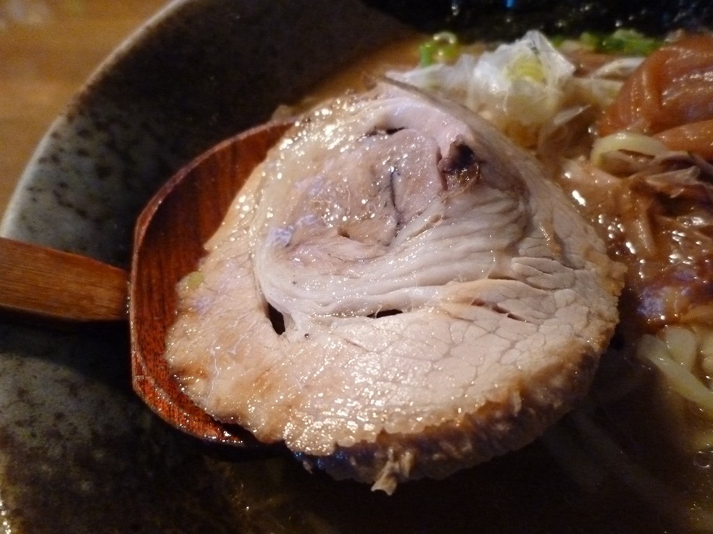 チャーシューは大判厚切りの巻きバラ。バラなんですが脂身トロリ、オニクはしっとりでしつこさ・クドさは全く無し。