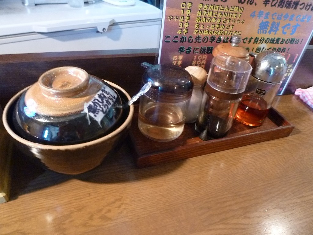 卓上調味料は餃子メインかなと思ってたんですが実は・・・。梅かつおらーめん¥800+味玉¥50