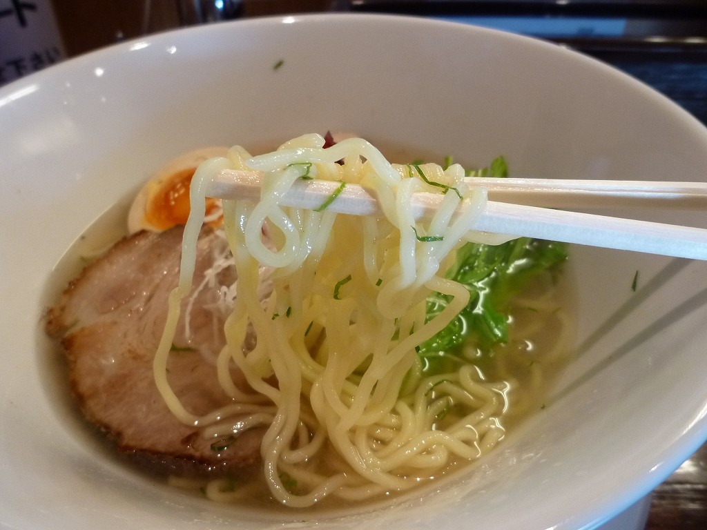 麺は細麺のやや縮れ。絡む紫蘇の風味が強く麺の味が分かりにくいんですが食感的にはちょい柔めですか。