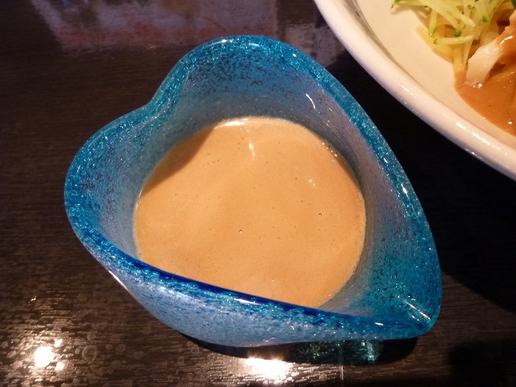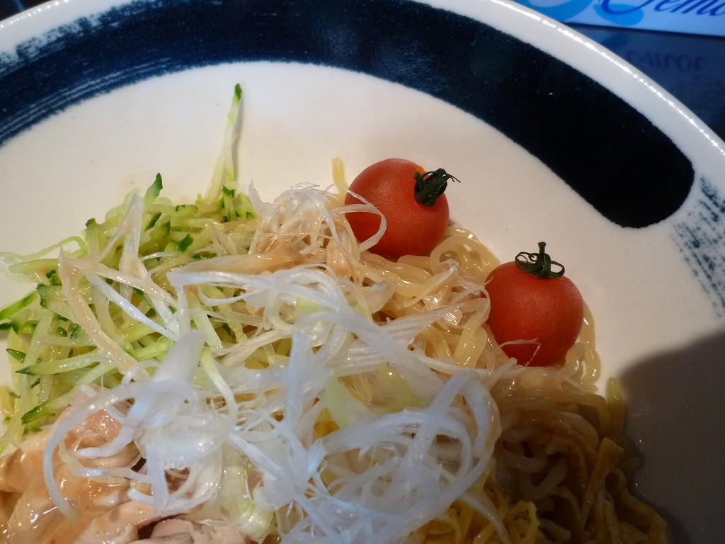 味としては想像どおりにゴマの冷やし中華ですね。麺が非常に冷たく〆てあってかなり強い歯応えがあります。