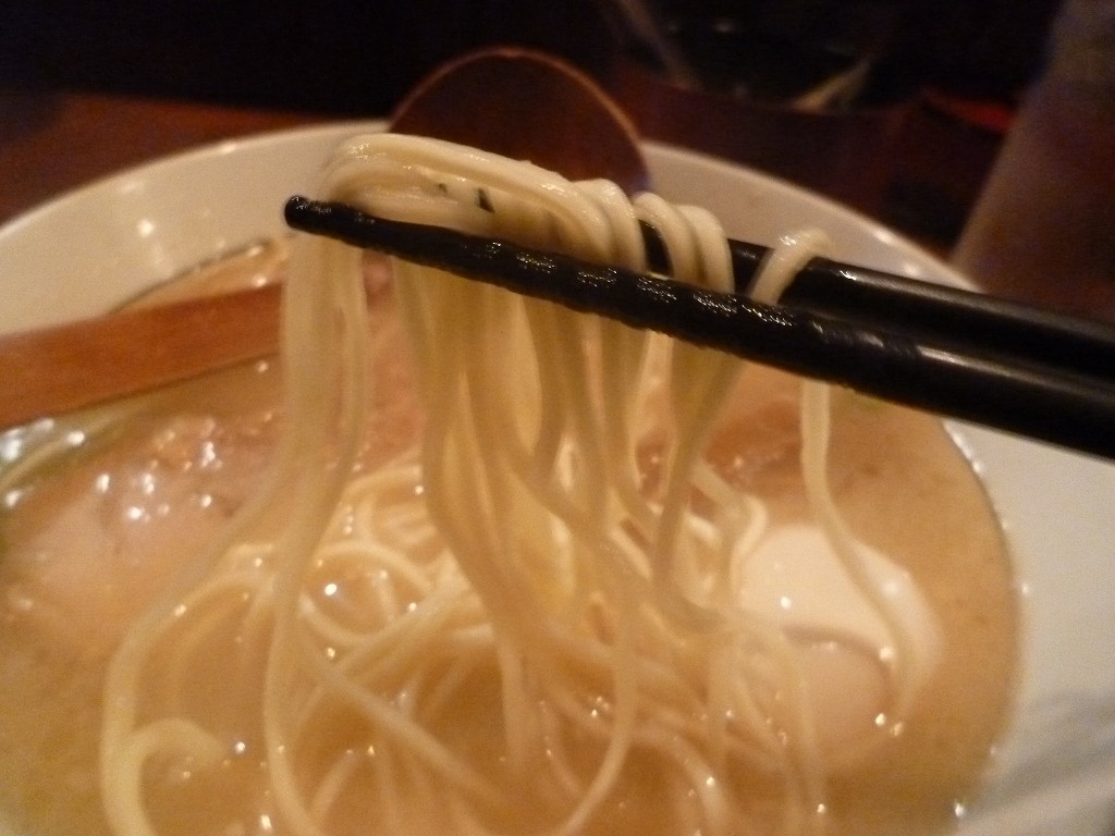 塩とはいってもあっさりではなくわずかに豚臭を感じるこってりスープ。醤油に比べケミカルさも感じますがトップに持ってくるからには自慢なのかな。