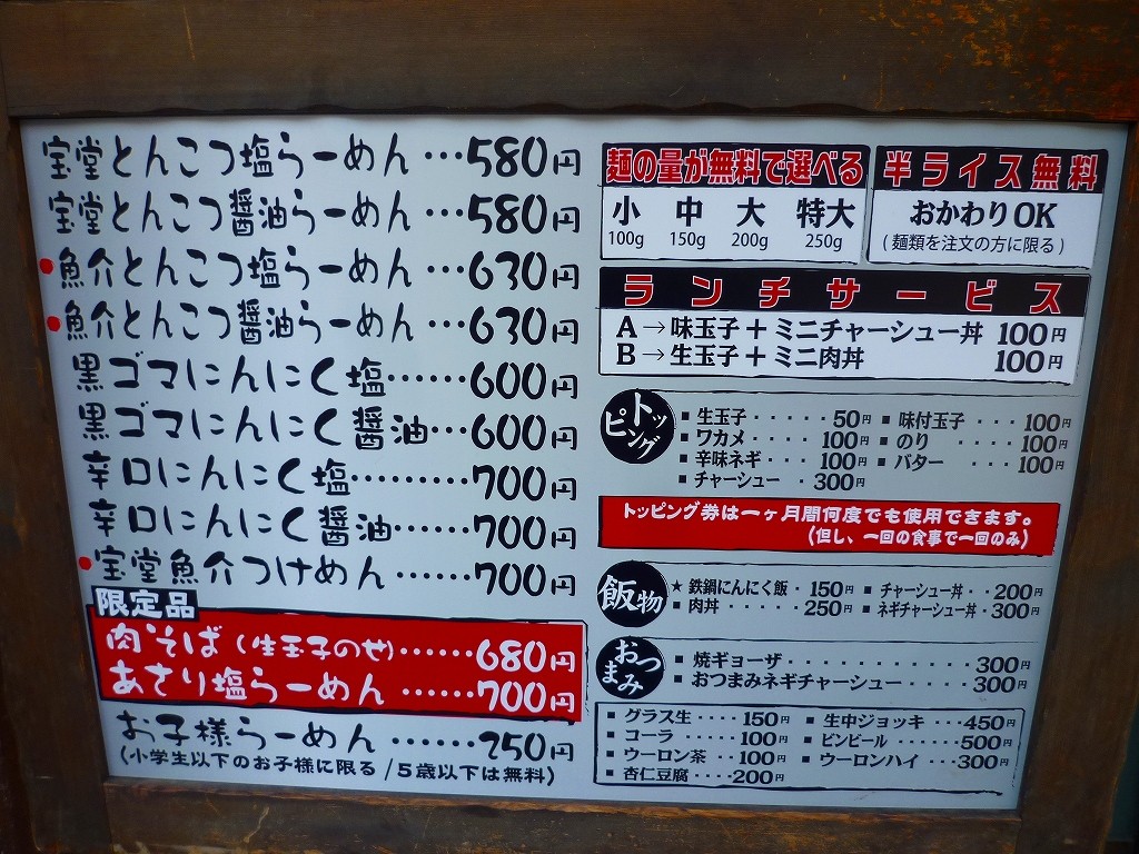宝堂とんこつ塩らーめん¥580+Aランチ¥100
