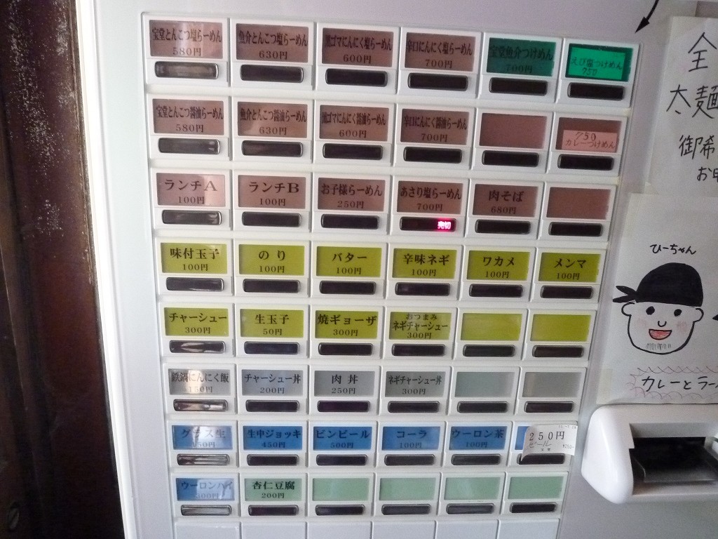 大きなメニュー看板には出ていないんですが期間限定としてえび塩つけめんとカレーつけめんなんてやってます。よく知らなかったんですが限定もやるお店なんですねぇ。