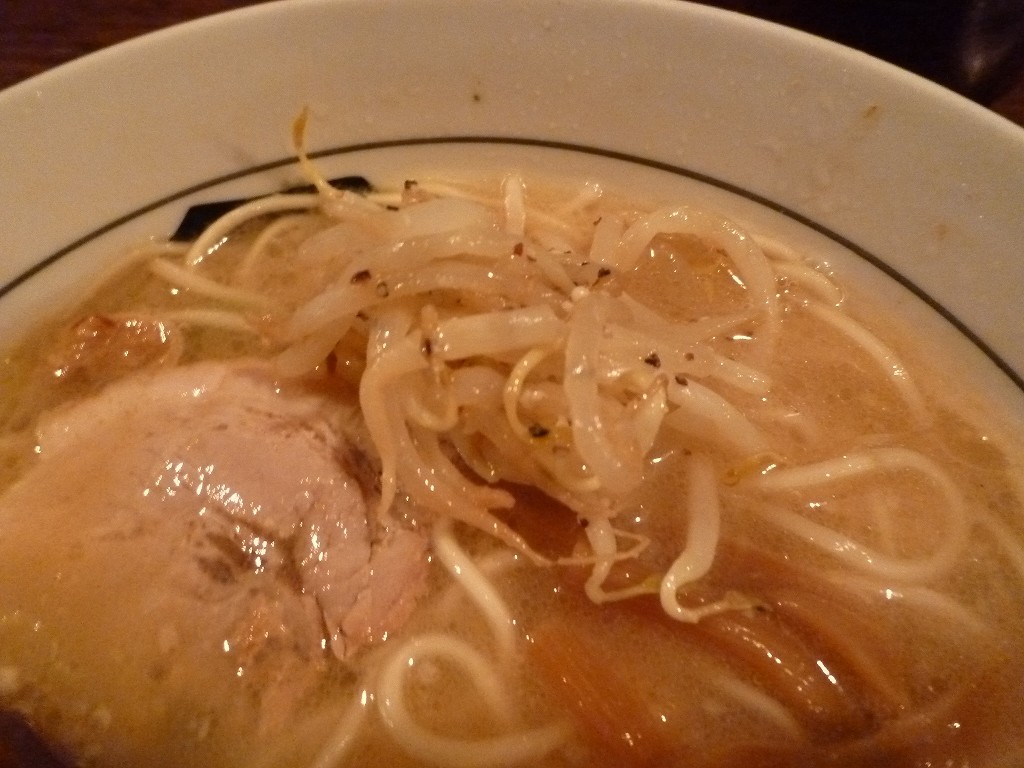 ちょっとお野菜的に物足りないんで卓上のモヤシを遠慮なく。モヤシトッピングとしても珍しく胡椒風味の味付けで味変えも出来ちゃいますね。