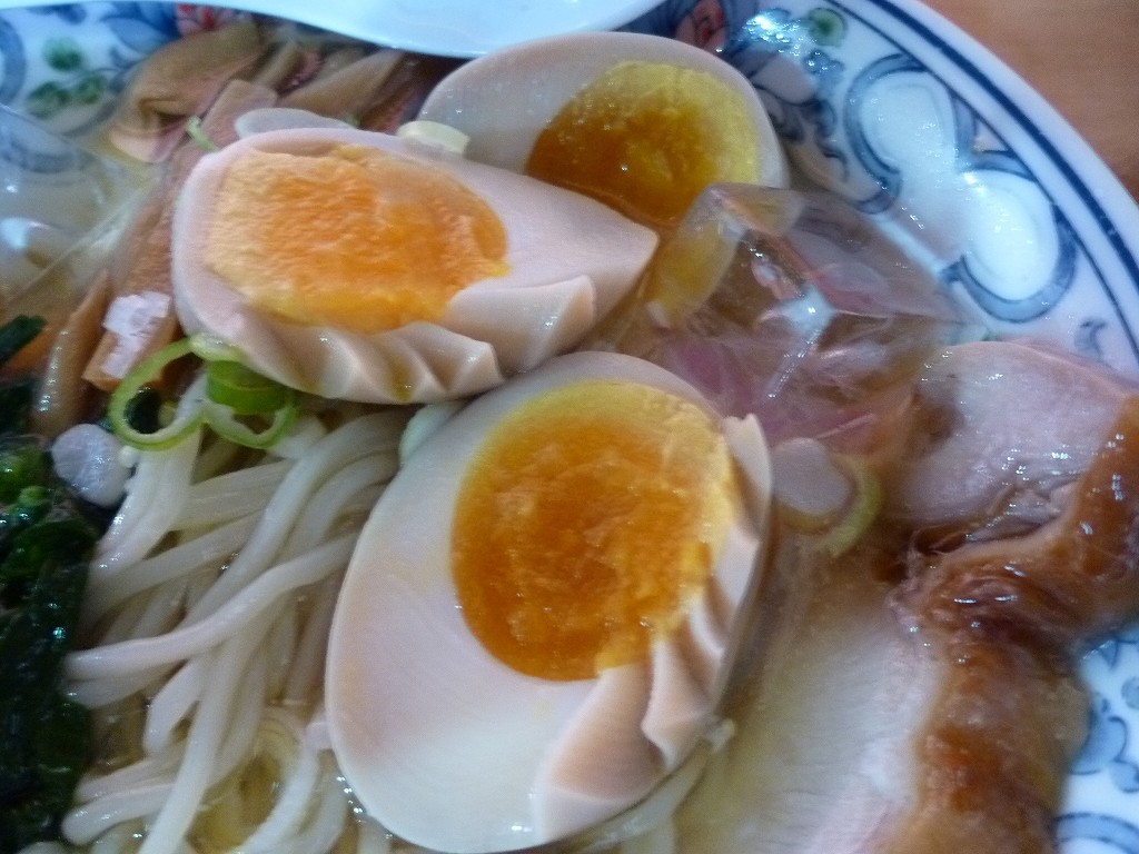 味玉はデフォで半分入るんで1.5個。固めな茹で加減ですが味は黄身まで染みてます。