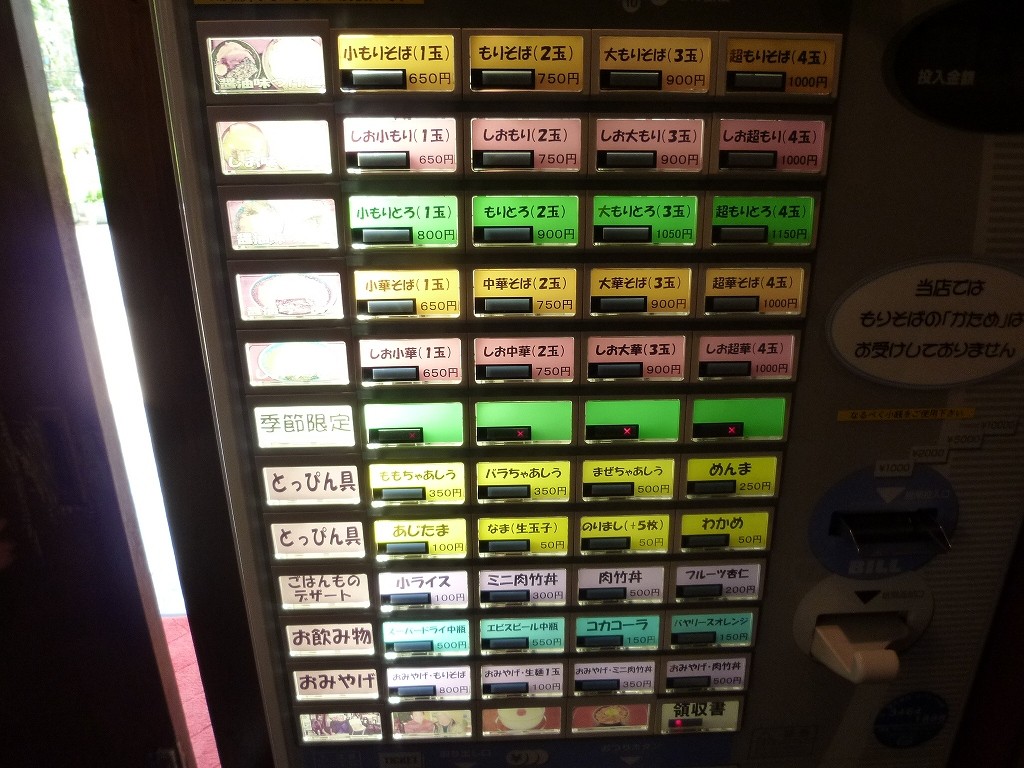 注意書き。もりそば(2玉)¥750+あじたま¥100